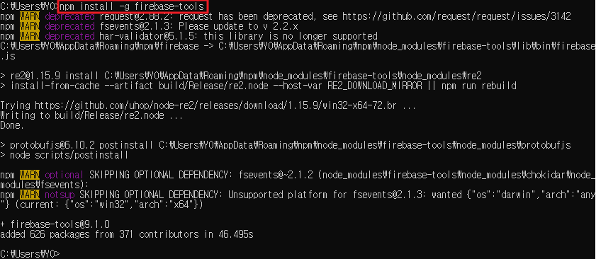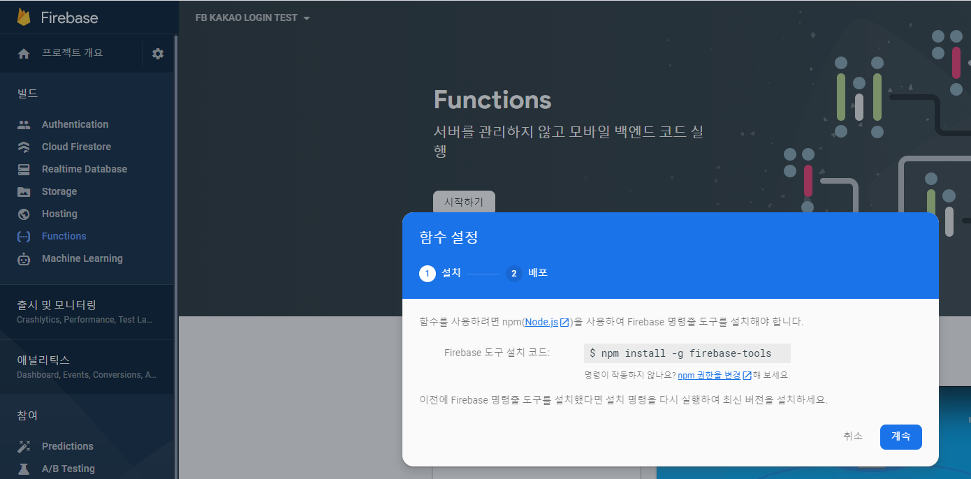- npm install -g firebase-tools 로 firebase-tools 설치