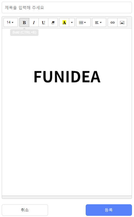 - 제목 입력 태그, editor, 취소&등록 버튼