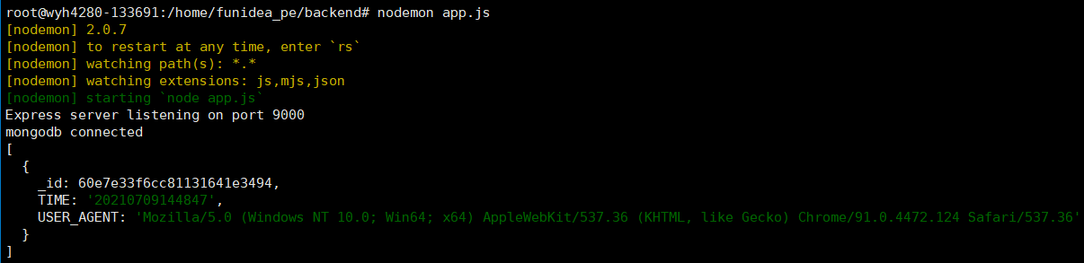 - node구동 + 접속 후 결과(http://IPADDRESS/mongo_test)