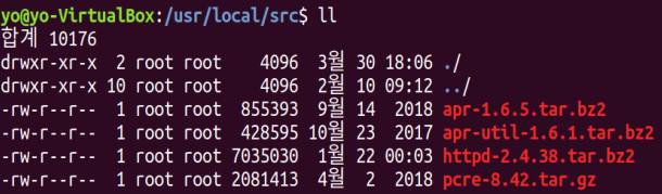 위 두 링크에서 아파치와 apr, apr-util 버전을 확인