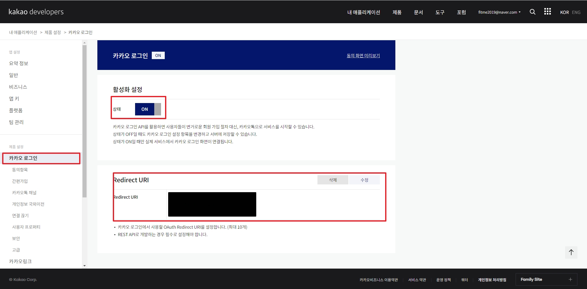 카카오 로그인 -> ON -> Rdeirect URL 등록