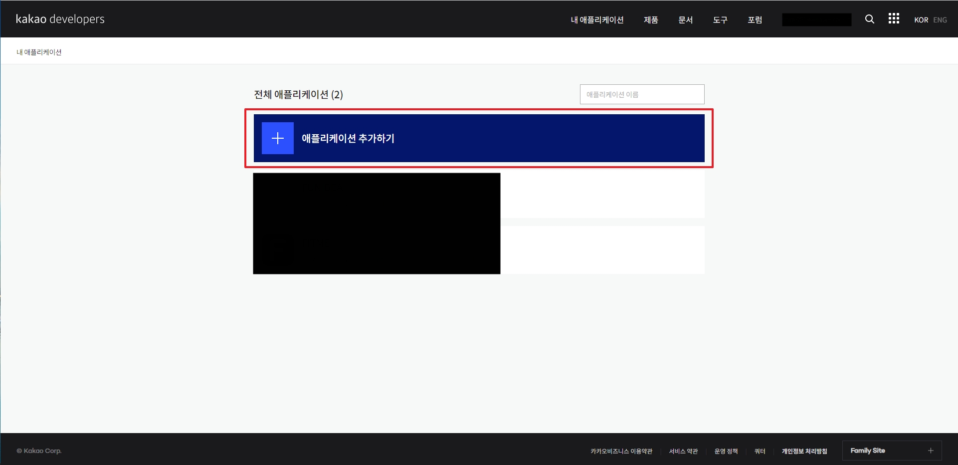 로그인 -> 내 애플리케이션 -> 애플리케이션 추가하기로 앱 추가