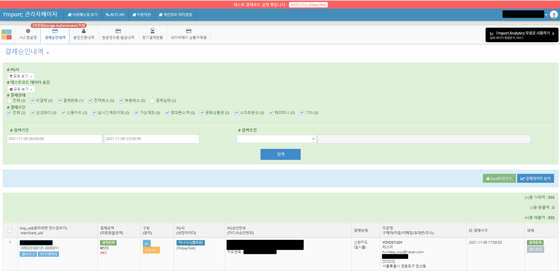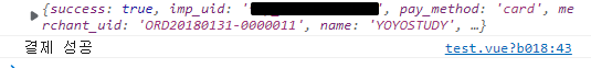 - 아임포트 관리자 콘솔에서 결제 내역 확인 가능