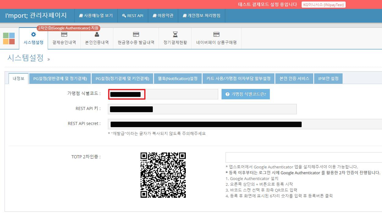 IMP.init("관리자 콘솔 - 내 정보 - 가맹점 식별코드");
