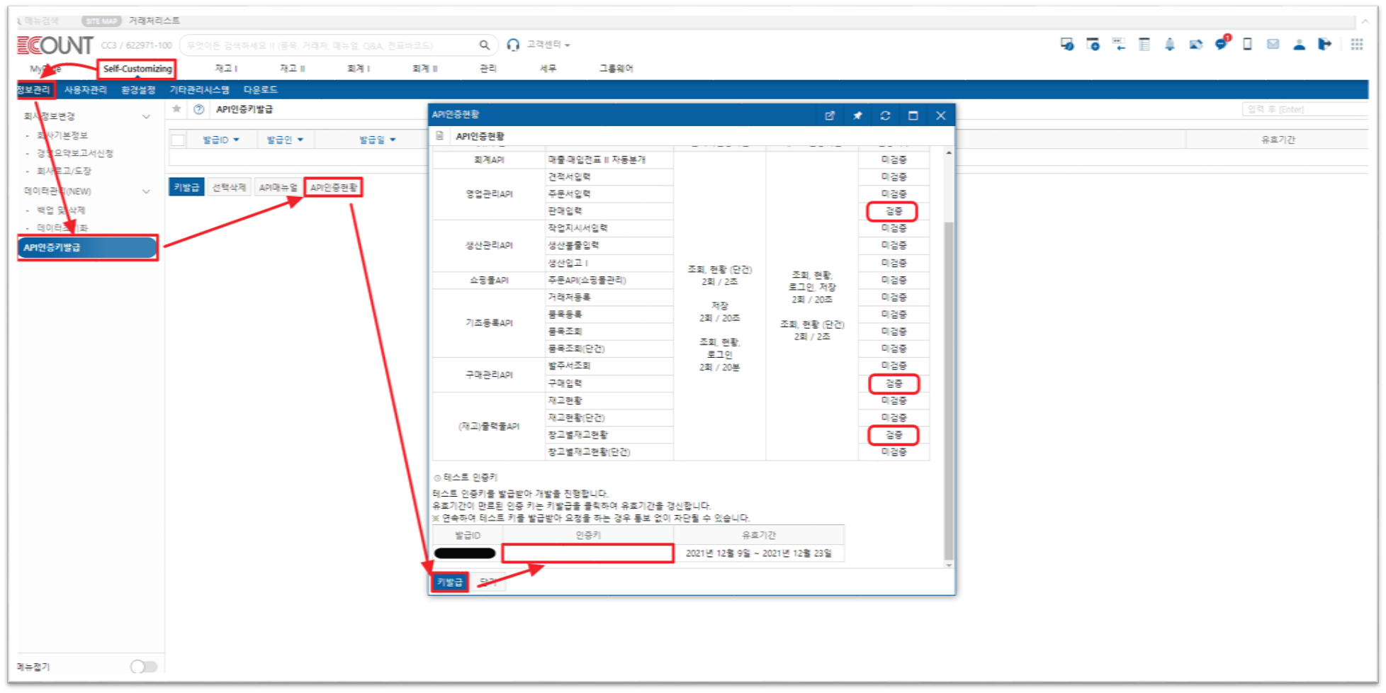 - 이카운트 ERP API 인증키 발급(테스트용 KEY)