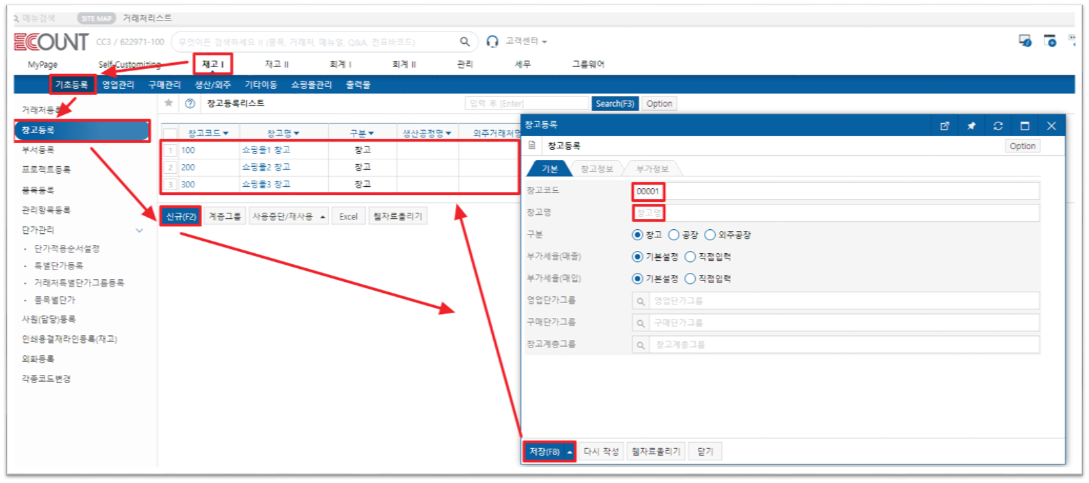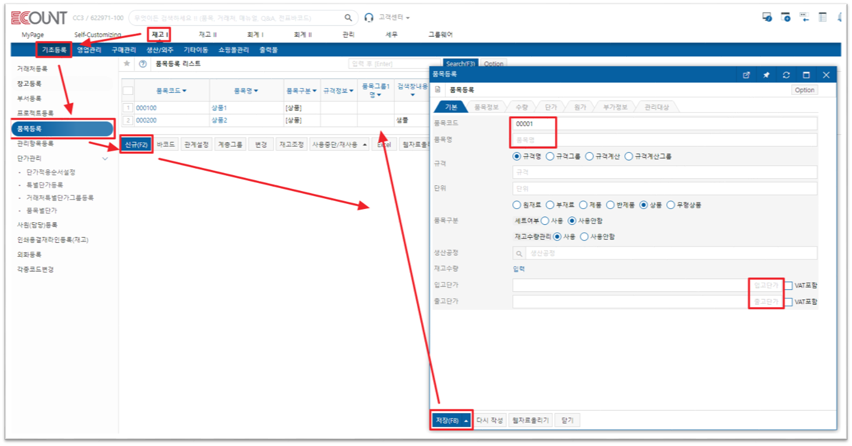 - 이카운트 ERP 창고별 품목 + 재고 지정