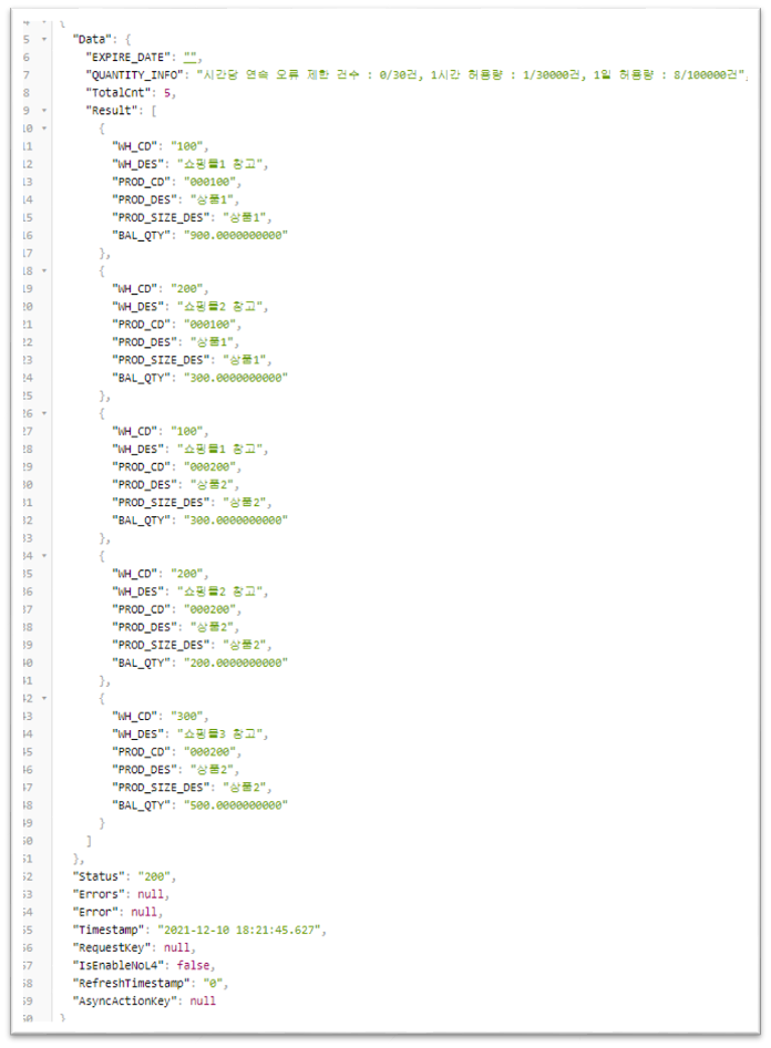 ※ 초기 셋팅에서 입력한 창고 + 품목별 재고 현황이 반환됨 ㅅㅅ
