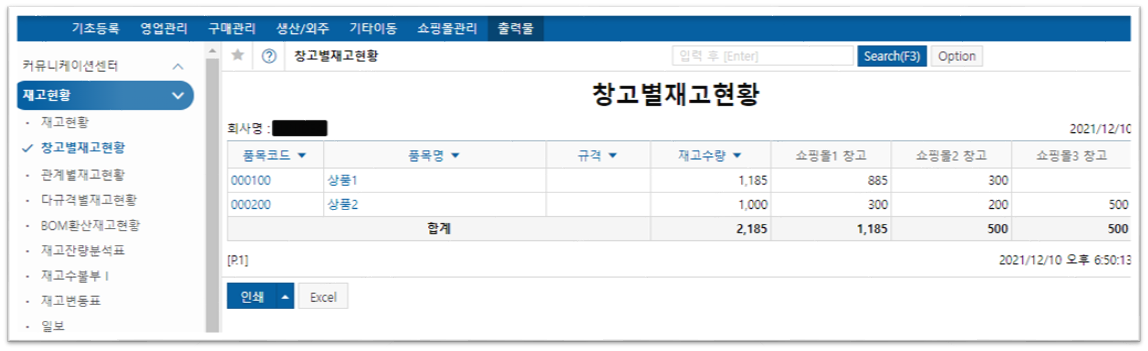 - 이카운트 ERP 창고별 품목 + 재고 지정