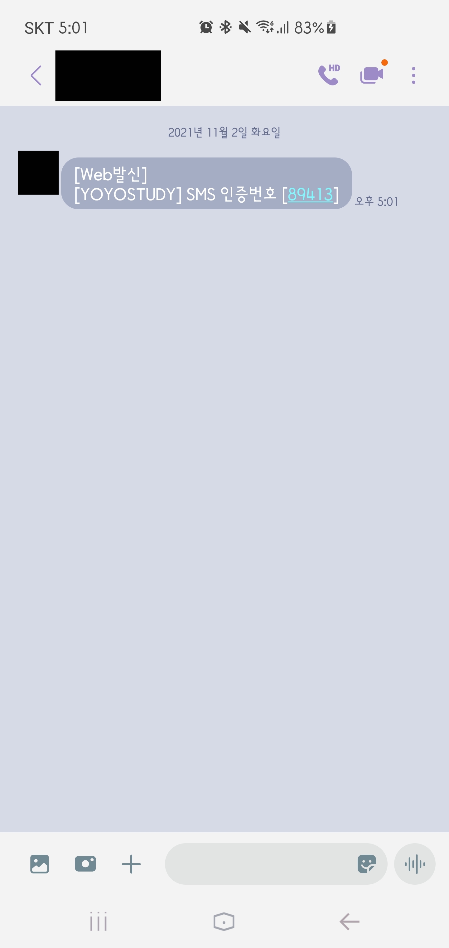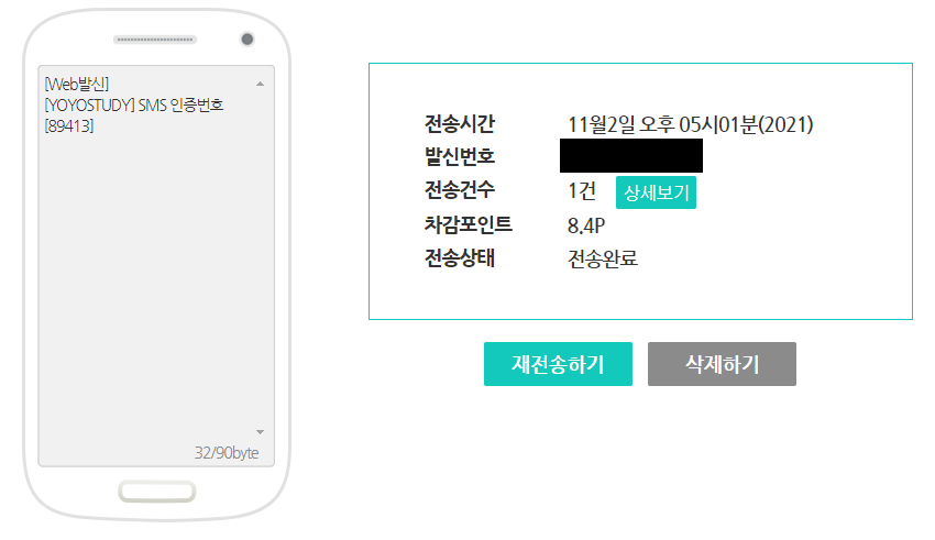 msg: `[YOYOSTUDY] SMS 인증번호 [${authenticationCode}]` // (1~2,000Byte)
