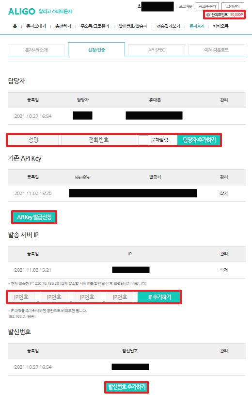 - SMS 전송 서비스 알리고 API 사용 ( https://smartsms.aligo.in/main.html )